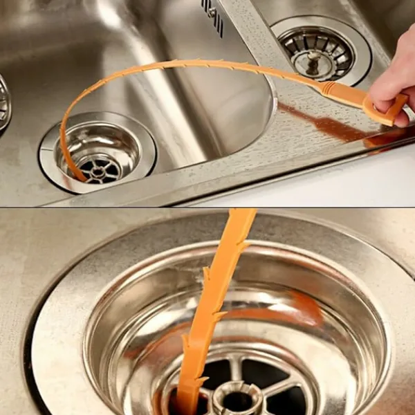 Den flexibla avloppsslangen passar små silar och rör, böjer sig till P-fällan där de flesta hinder uppstår.