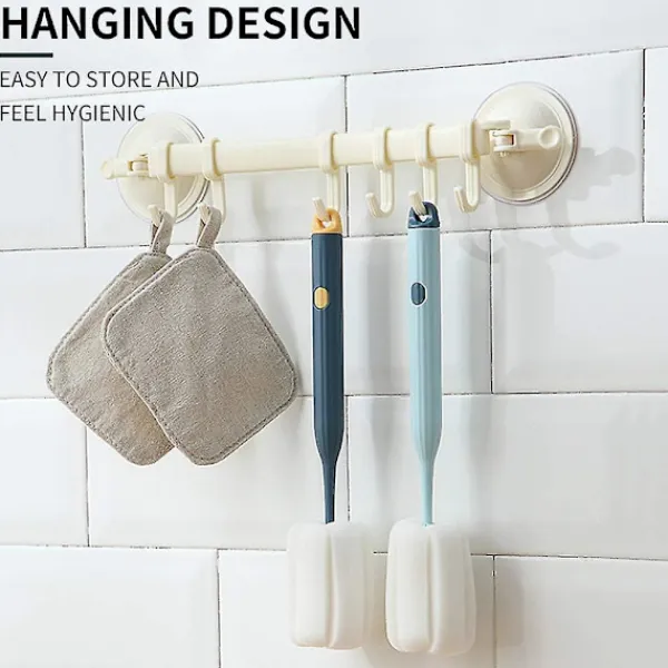 Ergonomisk handtagsdesign, borsthuvudet kan rotera 360° för att rengöra och kraftfullt ta bort envisa fläckar, vilket ger din kopp ett nytt utseende