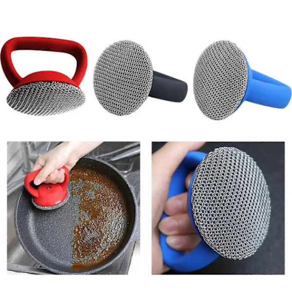 BEKVÄMT GREPP: Metallnätsskrubb med ergonomiskt handtag, lättare grepp, bekvämt.