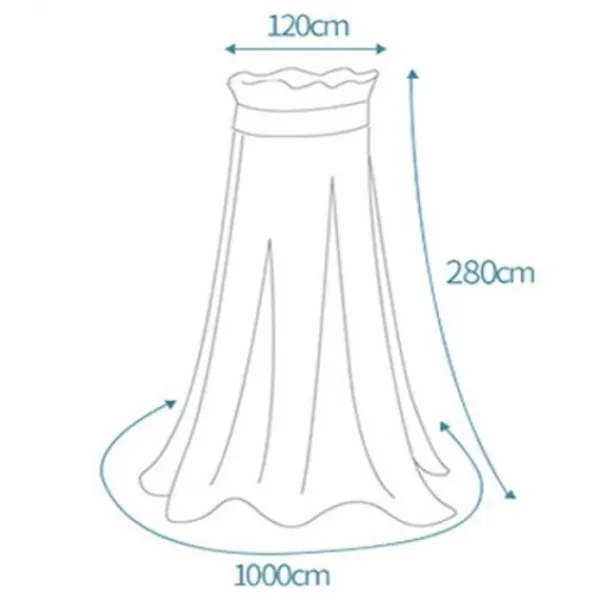 Stort myggnät sänghimmel Anti-mygg Anti-insekt sänghimmel hängande kit.◆Material: polyester.◆Förpackning: 1 * Myggnät.◆Storlek: Höjd 2,8 m. Toppdiameter 1,2 m. Nätomkrets 10 m.◆Detta myggnät är lämpligt för 1,5 m, 1,8 m och 2 m säng. Används på sommaren för att skydda dig från insekter och Används på sommaren för att skydda dig från insekter och.◆