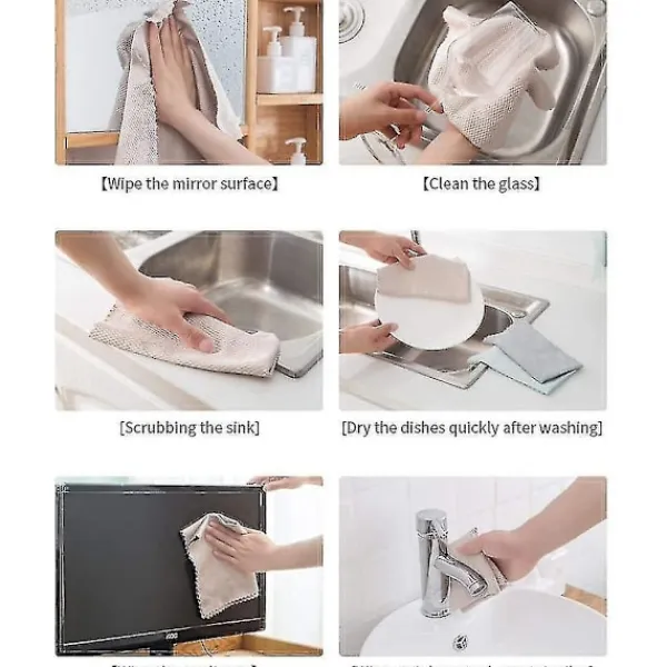 Allround: Bäst för rengöring av glasfönster, speglar, linser, köksredskap och så vidare. Kraftfull rengörings- och poleringsduk för vinglas, bestick, tallrikar och så vidare. Rengör enkelt damm, smuts och smuts som en magnet. Praktiskt för dagligt hushållsarbete, tvätt, hotell och restaurang.