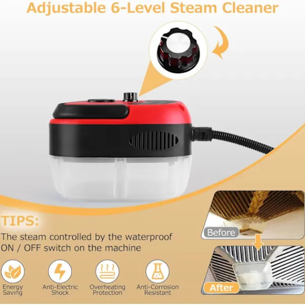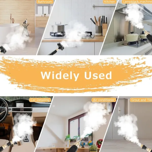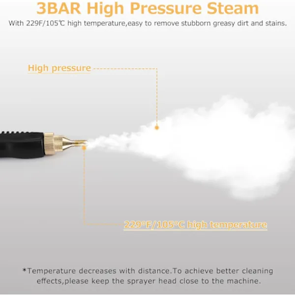【Brett användningsområde】: Den multifunktionella handhållna ångrengöraren kan rengöra svåråtkomliga springor, hörn, vinklar och olika ytor/material: köksbänkar, bänkskivor, toaletter, grill, duschdraperier, golv, husdjursmadrasser, soffor, bilväggar, spisar,