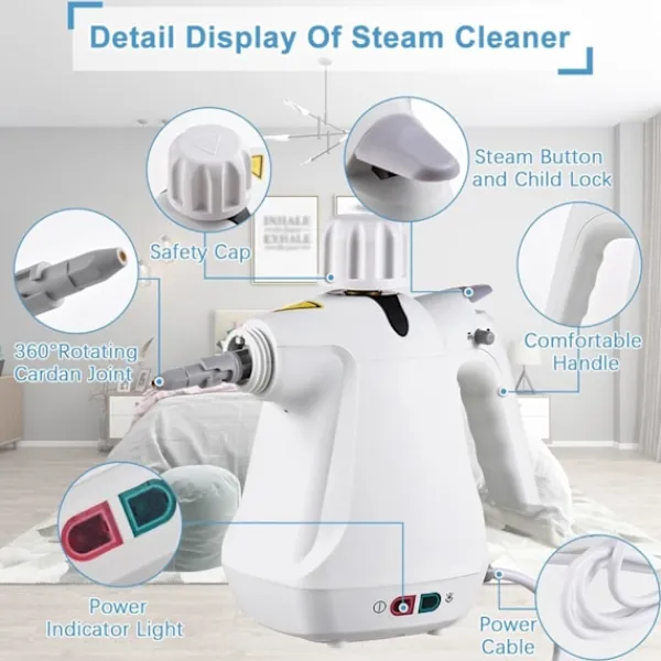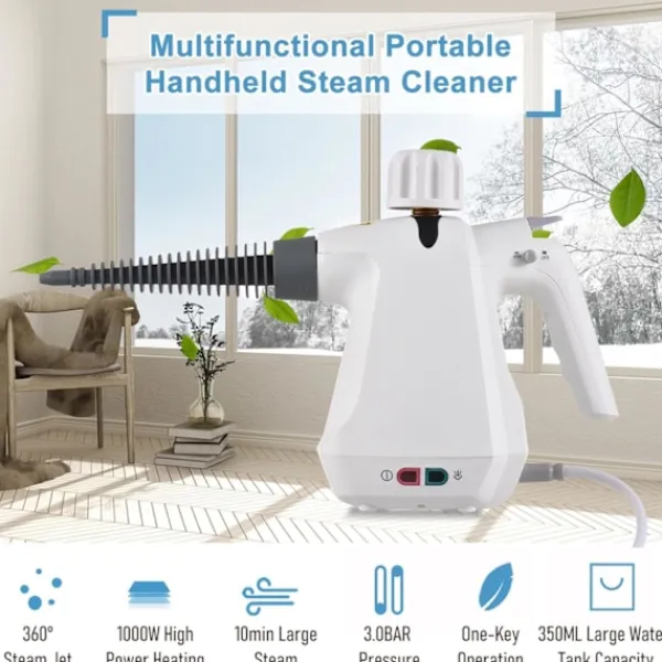 Rengör kraftfullt det tuffaste: Upplev kraften i djuprengöring med vår handhållna ångrengörare. Den här enheten arbetar med över 1000 watt och avger ett ångflöde med högt tryck vid 105℃ (221℉), vilket gör den perfekt för att ta itu med tuffa fläckar, smuts och till och med