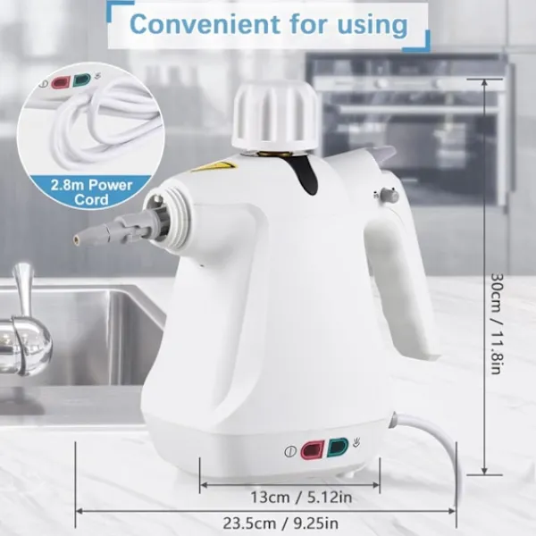 gör att du kan fokusera på rengöring istället för att fylla på ofta. Lätt, bärbar och med en lång strömkabel (9,19 fot) kan denna handhållna ångrengörare gå längre och arbeta på avstånd.