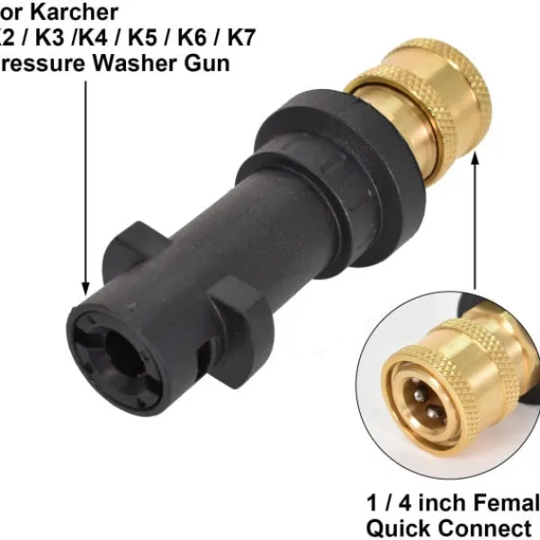 Effektiv rengöring: Jet washer-kontakt som passar Kärcher K2-K7 ändras till honkontakt 1/4” snabbkoppling. En 6,35 mm snabbkopplingsdesign, tryck upp till 4000 psi. Passar de flesta högtryckstvättar.