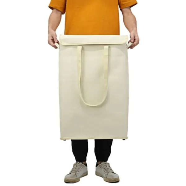 Vattentätt tyg. Fodret är tillverkat av vattentätt material så att tvättkorgen kan rymma våta eller smutsiga kläder. Tvåvägs bärbarhet. Den har både långa handtag och sidohandtag, du kan enkelt bära den till tvättstugan och tillbaka, eller ta den med dig ut på picknick, camping.
