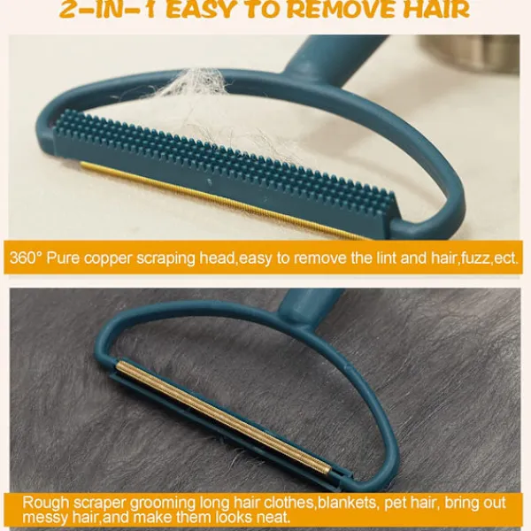 Dubbelsidig: Den ena sidan är av ren koppar och kan snabbt ta bort päls, ludd och hår. Den andra sidan med runda borsthuvuden jämnar ut textilytan.