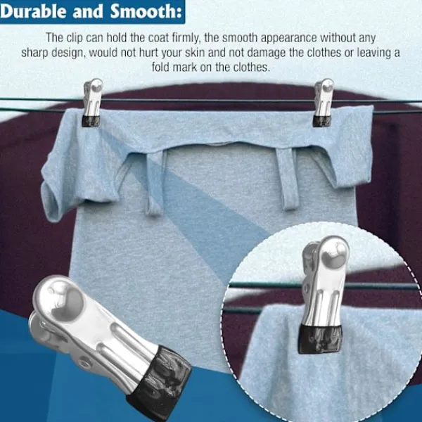 Bred användning: Våra klädnypor i rostfritt stål är inte bara användbara för din tvättlina, utan de kan också hjälpa dig att hålla foton, teckningar eller sidor. Dessa robusta klädnypor kan också användas för att försegla öppna matkassar eller var som helst annars du tycker att det är användbart.