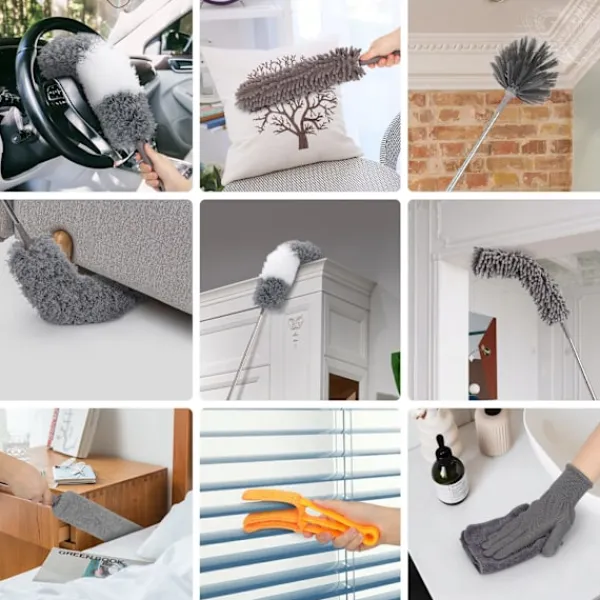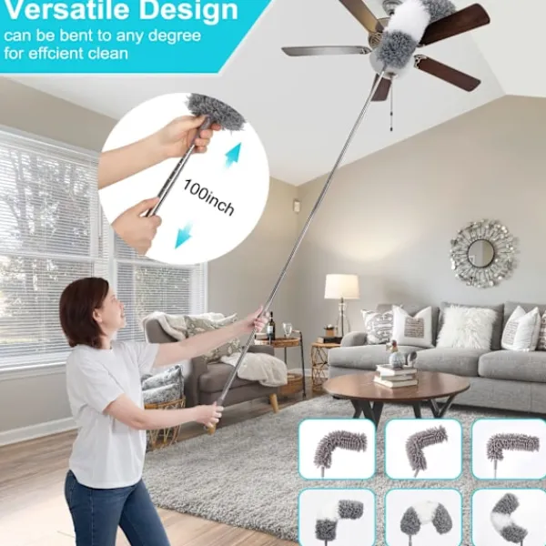 *Lätt att använda: Möbelrengöringsdamman kan enkelt rengöra tak, takfläktar, lampor, bokhyllor, alla trånga eller svåråtkomliga platser.