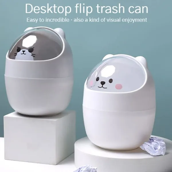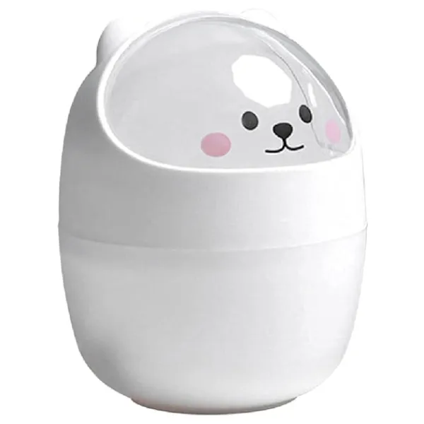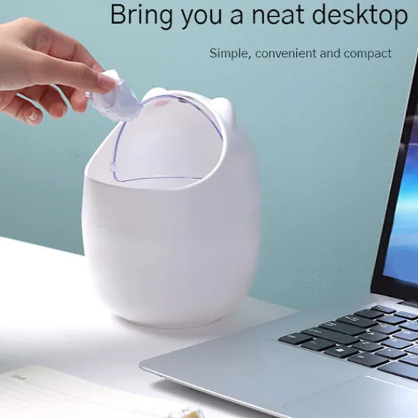 Mini Skrivbords Papperskorg med Lock, Bärbar Bord Papperskorg, Sminkbord Papperskorg, för Hem Vardagsrum Köks Sovrum Badrum Kontor, Vit