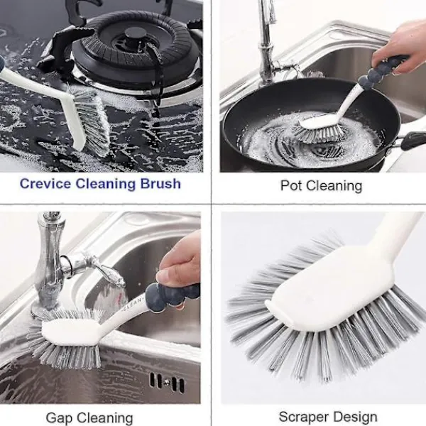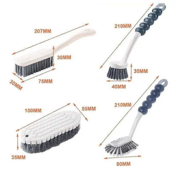 Vad du får: Du får ett 4-pack rengöringsborstar, inklusive rengöringsborste med grepp, diskborste med grepp, hörnbortse och spårborste.