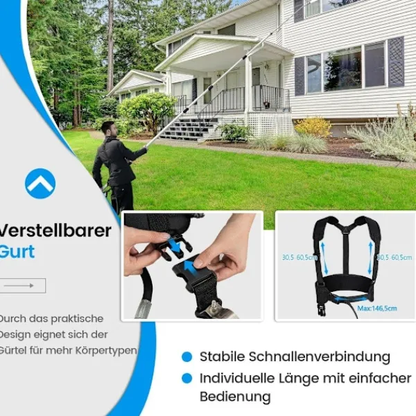 Säg adjö till riskerna med instabila stegar och hej till enkel rengöring med vår 550 cm teleskopiska högtryckstvättstav. Detta innovativa verktyg är designat för att göra rengöring av höga och svåråtkomliga områden inte bara enklare utan också säkrare. Med sina unika egenskaper, inklusive en 15° förlängningsstav och en rännrengöringsanordning, uppfyller denna teleskopstav alla dina olika rengöringsbehov. Dessutom innehåller setet fem sprutmunstycken som kan justeras för att ändra sprutvinkeln för tvätt av olika ytor som tegel, betong, trä eller glas. För att ta itu med dolda ställen som underredet på ett fordon kan den svängbara kopplingen användas i tre olika vinklar. Detta omfattande set är utformat för att användas med högtrycksslangar och högtryckstvättar, och för optimal kompatibilitet medföljer två adaptrar (M22-14 mm och M22-15 mm).