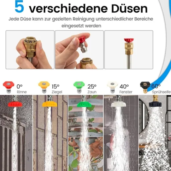 - Inkluderar 5 sprutmunstycken för mångsidig rengöring på olika ytor