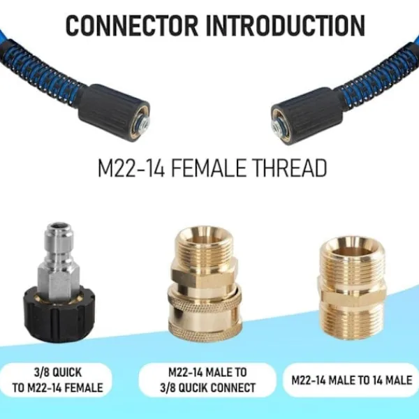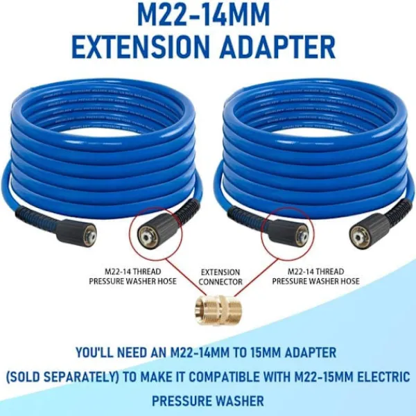 Important Note: This is a pressure washer hose, not a regular garden hose – it is not compatible with regular water taps. Only intended for use with pressure washer and pressure washer gun.