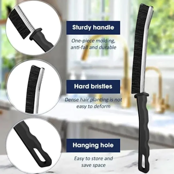 Bred Användning: Denna rengöringsborste för springor är lämplig för rengöring av olika springor, såsom fönsterspringor, golvspringor, köksspringor, badrumsspringor, bilspringor och andra springor. Det är ett nödvändigt verktyg för hemstädning.
