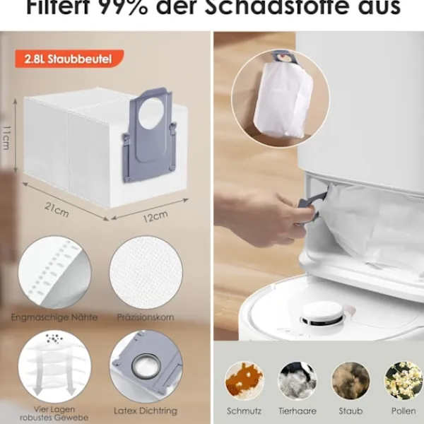 Omfattande set: Kitet innehåller allt du behöver för att bibehålla robotdammsugarens höga prestanda. Med huvudborsten, sidoborstarna, filtren, dammpåsarna och moppdukarna har du alla nödvändiga delar för en grundlig och effektiv rengöring.