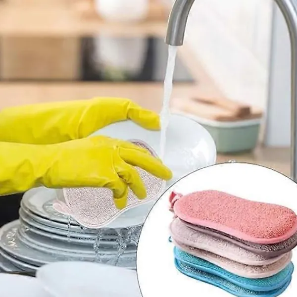 2 olika sidor: ena sidan är mikrofiber och den andra sidan är en skrubbsida. Den är perfekt för non-stick och anti-reputensiler. Hälsosam och säker miljövänlig svamp: Denna tvättbara disksvamp är tillverkad av miljövänliga och antibakteriella material.