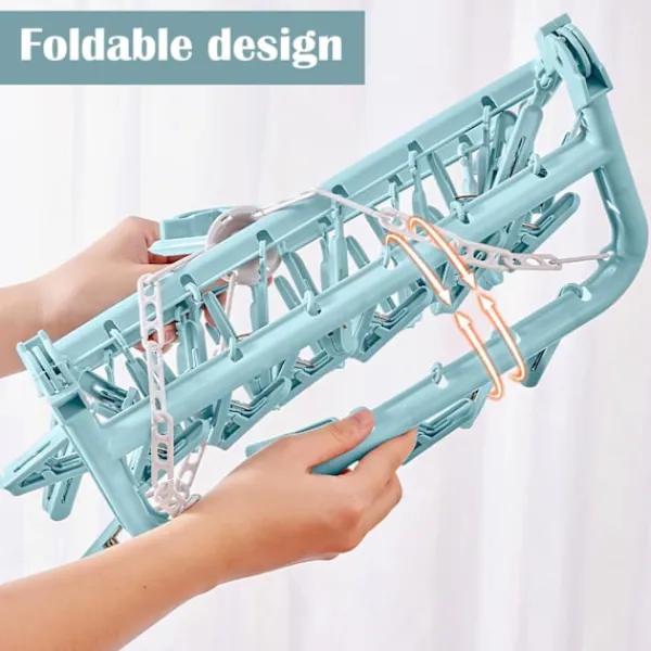 【Material】 Klädtorkningshängaren tillverkad av högkvalitativ plast. Den hopfällbara hängande strumphållaren är stark och hållbar, inte lätt att skada, luktfri, släta hörn, polerad rund och slät utan att skada kläder.