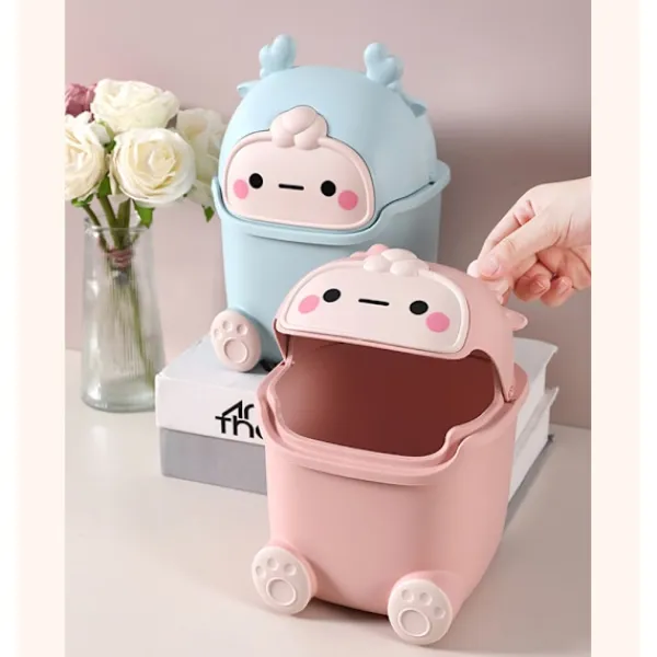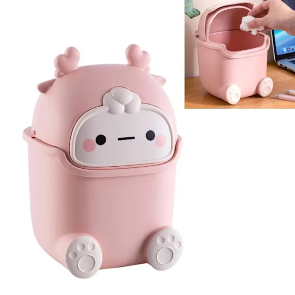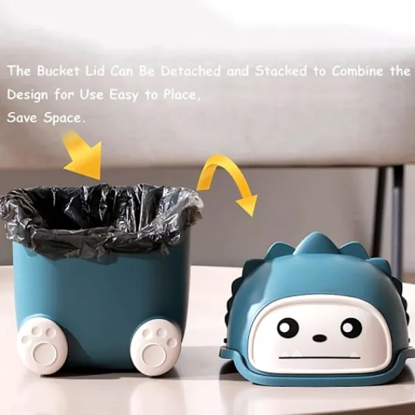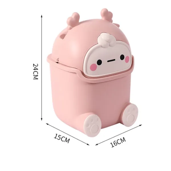 Söt form – Söt tecknad djurform, när du öppnar papperskorgen verkar det som att djuret öppnar munnen för att äta, vilket är supersött. Försluten och luktfri, den förhindrar att soporna läcker ut, soporna kommer inte att exponeras och locket kan förhindra spridning av lukt, så att du bättre kan njuta av bekvämligheten som papperskorgen ger.