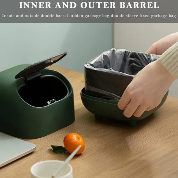 Lätt att använda: Tryck på flip-lock-designen för att isolera speciella lukter, tryck lätt på den för att studsa och tryck sedan stäng den för att sätta i sopsäcken med dubbla lager ärmar, med ett nytt utseende och solid sopsäck.