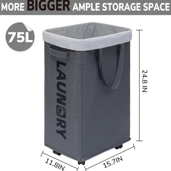 Rymligt förvaringsutrymme. Med en rymlig storlek på 15,7 x 11,8 x 24,8 tum gör vår stora tvättkorg det enkelt att förvara alla typer av kläder, inklusive T-shirts, byxor, kläder och underkläder