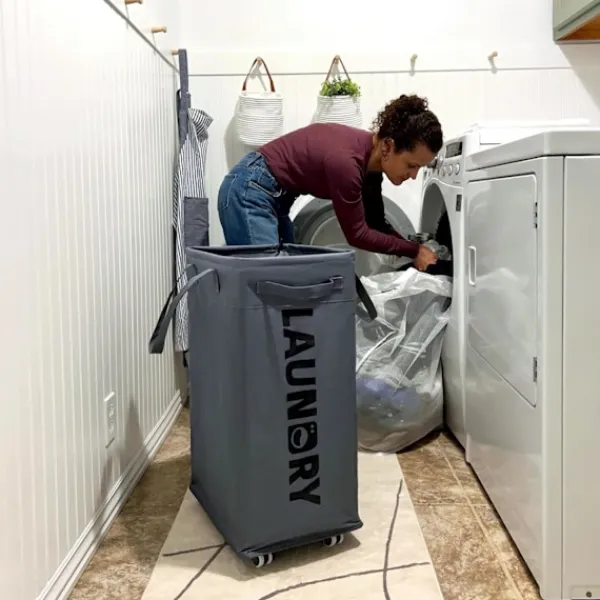 Bekväm transport. Med en rulldesign och ett robust handtag är det enkelt att transportera kläder från ditt sovrum till tvättstugan eller badrummet. Fyra hjul och två bromsar säkerställer balans och säkerhet för hemmabruk