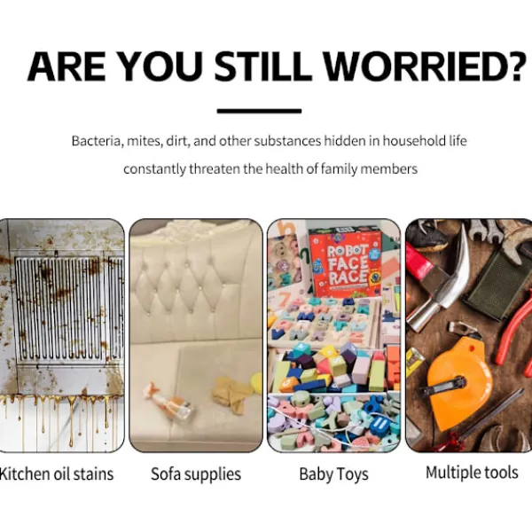 LÄTT OCH BÄRBAR – Handhållen design och kompakt kropp gör den lätt att bära med sig. 9,8 ft strömkabel ger effektiv drift och rengör enkelt svåråtkomliga områden. Den lätta rengörarens design gör den bekväm att bära från rum till rum