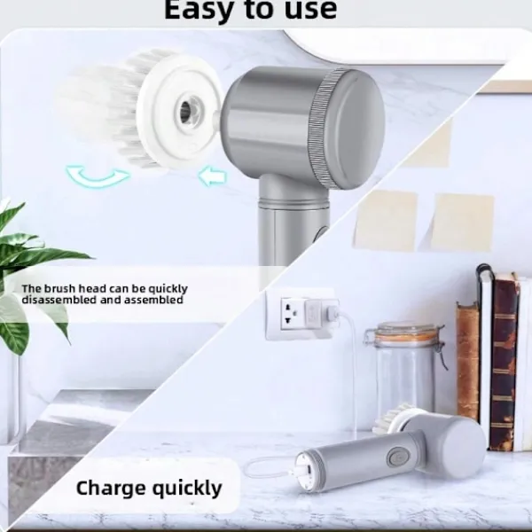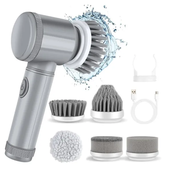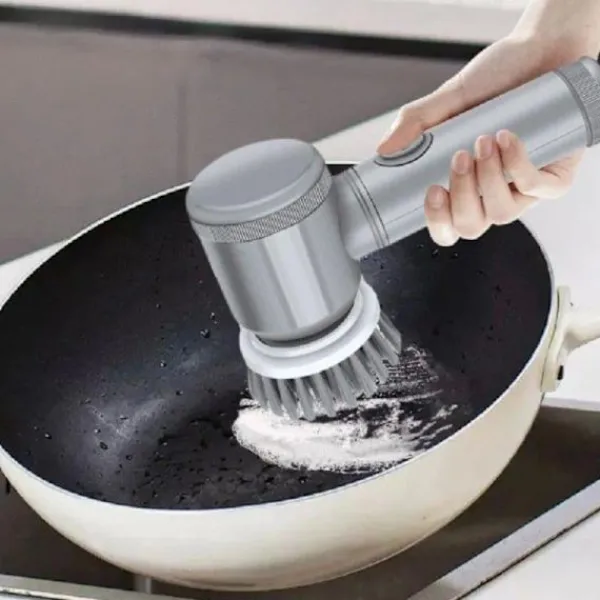 Utrustad med sex utbytbara borsthuvuden anpassar den sig enkelt till olika ytor, inklusive köksredskap, bänkskivor, fogar och känsliga ytor, vilket säkerställer en grundlig och mångsidig rengöringsupplevelse.