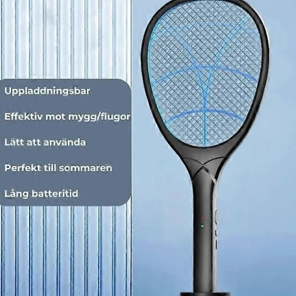 Uppladdningsbar elektrisk flugsmälla/racket för att eliminera insekter/flugor/myggor. Lätt att använda, produkten gör exakt vad den ska.