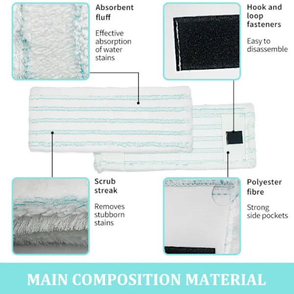 【Högkvalitativa material】Moppöverdraget är tillverkat av mikrofiber. Mycket absorberande, bra rengöringskraft, absorberar enkelt all smuts och dammpartiklar och håller dem fast – för utmärkta rengöringsresultat.