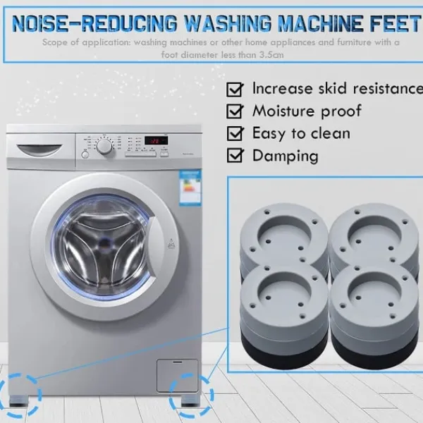 BEGRÄNSAR RÖRELSEN HOS HUSHÅLLSAPPARATER Om din torktumlare eller tvättmaskin wobblar det minsta, vet du vilket ljud det kan skapa i ditt hus. Med dessa praktiska kuddar kan du hålla dessa tunga elektriska apparater precis där de ska vara och begränsa ljudnivån i ditt hem.