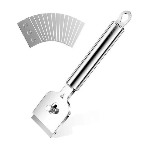 Mångsidig: Grundlig rengöringsskrapa för spisar, induktionshällar, glaskeramikhällar, glas och fönsterrutor. Avlägsnar enkelt matrester, klistermärken, lim, stearin, etiketter, fönsterfilm, plack, smuts, färg och mer. Säkerhet: den ultratunna metallen omger bladet perfekt. Säker att använda och skär inte i fingret. Bladbytet är enkelt och säkert tack vare mekanisk låsfunktion. Lätt att använda: säkerhetsknapparna på båda sidor av bladbytet på keramikhällen ger en bra stabil struktur, så att du kan byta bladet. Skruva helt enkelt på knappen på ugnsrakan, ta bort det övre locket för att ersätta det med ett nytt blad och installera knappen. Var försiktig när du byter bladen. Stark och – strukturen är gjord av högkvalitativ metall som är stark och hållbar och deformeras eller går inte sönder. Högkvalitativa material kommer att tjäna dig länge och göra det snabbare och enklare att skrapa föremål. Mångsidig: keramikhällsrengörare, grundlig rengöringsskrapa för spisar, induktionshällar, glaskeramikhällar, glas och fönster. Avlägsnar enkelt matrester, klistermärken, lim, stearin, etiketter, fönsterfilm, plack, smuts, färg och mer. Material: legeringfärg: silverfärgadPaketets innehåll:1 x spade 14 x SpadbladEndast ovanstående paketinnehåll, andra ingår inte. Obs: Ljusreflektion och olika skärmar kan göra att färgen på föremålet på bilden skiljer sig lite från den verkliga. Måtten tillåts vara +/- 1-3 cm