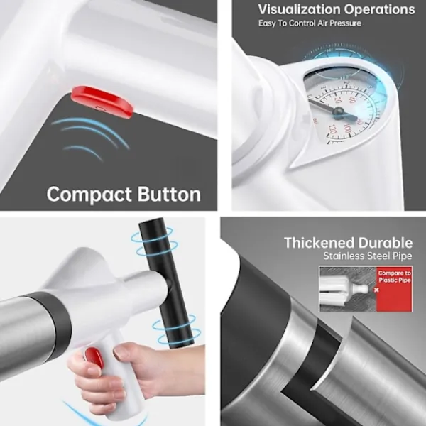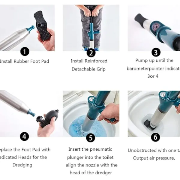 Visuell Barometer: Det är lätt för dig att läsa av tryckvärdet. Du kan justera lufttrycket på toalettrensningspumpen efter dina behov av rensning.