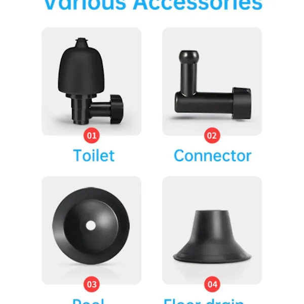 Multifunktion: Utrustad med 4 Typer av Proppar, är kolvrensaren lämplig för olika scenarier: toalettkolv, badrumsavlopp, diskbänkskolv och andra rör. Hjälper dig att enkelt rensa avloppen.