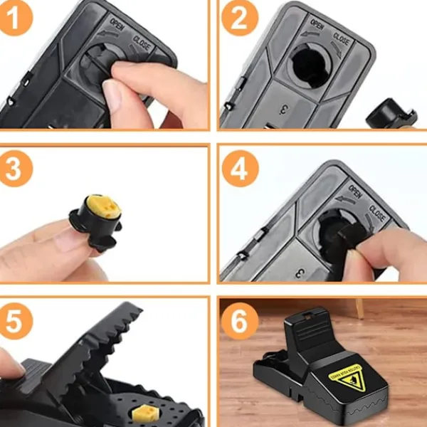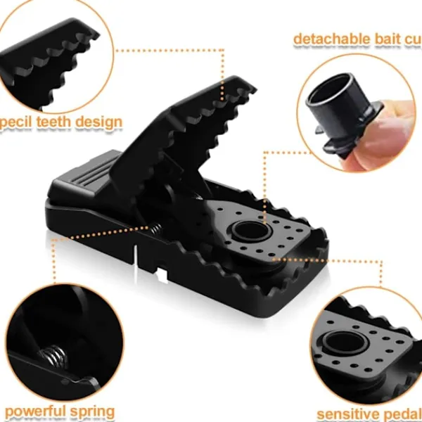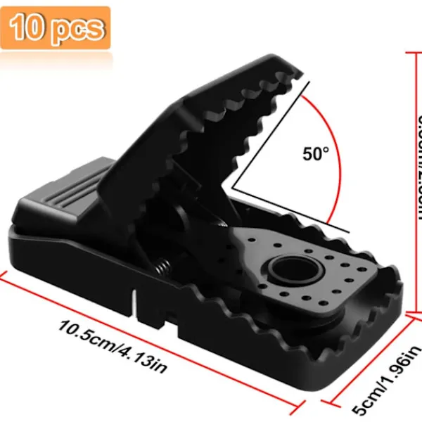 Effektiv musfälla: Detta är en högkvalitativ musfälla. Fällan är tillverkad av plast- och metalldelar. En mycket känslig utlösningsmekanism med en särskilt stark effekt säkerställer utmärkt effektivitet. Fällans tänder sitter tätt fast på djuret, vilket gör det omöjligt för dem att fly. Den optimala utlösningsmekanismen är varken för tidig eller för sen.