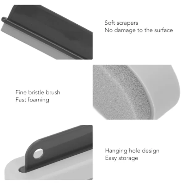 1. Mjuk och Tät: Vår duschrengöringsborste använder en fin borste för snabb skumbildning. Den mjuka skrapan skadar inte ytan.