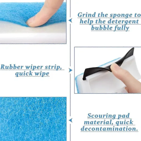 Mått: 18 x 11,7 cm. Vikt 50 gram. 2-i-1 rengöringsborste. Ena sidan av rengöringsborsten är en non-woven polyester svamp, som är mjuk och inte skadar materialets yta. På andra sidan finns en gummiskrapa som enkelt tar bort vattenfläckar från speglar och glas. Som en fönsterrengöringsborste. Borstens mjuka svamp behåller fukten från rengöringsmedel under lång tid, vilket hjälper till att mjuka upp smuts för effektiv rengöring utan att skada ytor. Som en fönsterskrapa. Gummiskrapan är tillverkad av högkvalitativt gummi med rena kanter för att säkerställa att vattnet är tillräckligt rent vid skrapning av vattenfläckar. Paus. Det finns ett hängande hål i änden av handtaget för att hålla det torrt och lätt att förvara. Smart storlek. Den kompakta storleken på denna borste, cirka 4,7 x 1,8 x 7,3, är lätt att hantera och sparar utrymme. Multifunktionell rengöringsborste är din goda hjälpreda, används ofta i badkar, speglar, kakel, bilfönster etc. Material: PVC, svamp, gummi. Vit.