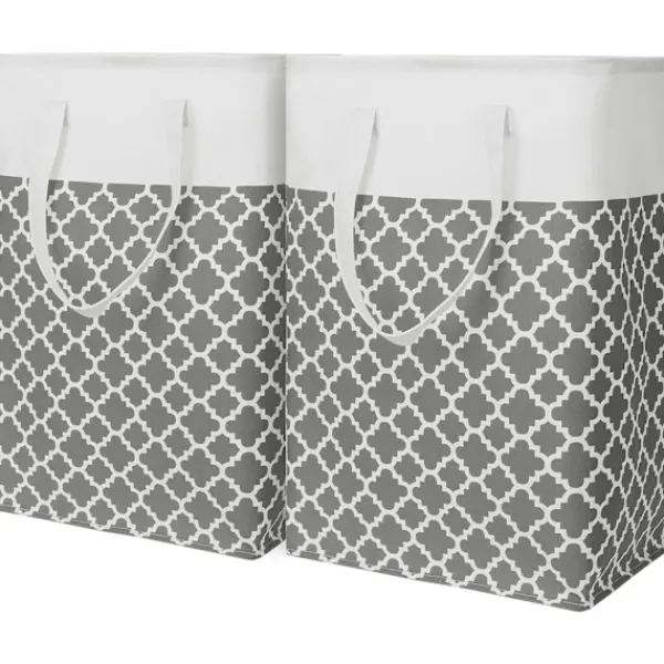 2-pack 75L tvättkorg med långa förstärkta handtag, fristående vattentät förvaringshölje, hopfällbar tvättkorg för sovrum, badrum, sovsal (grå)