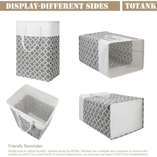 Förbättrat material: Tjock terylenbomull med vattentät beläggning för enkel rengöring och stor fristående effekt. Använd inte tvättmaskiner och torktumlare för att tvätta tvättkorgen, PE-beläggningen kan förstöras.