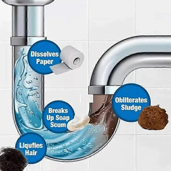 Superkraftfull Avloppsstopp BorttagarePipeline Muddringsmedel är superkraftfullt och kan eliminera hårda vattenmineralavlagringar från din toalettank, Det förbättrar också spolningen och hjälper till att rengöra vattenstrålar för bättre flöde