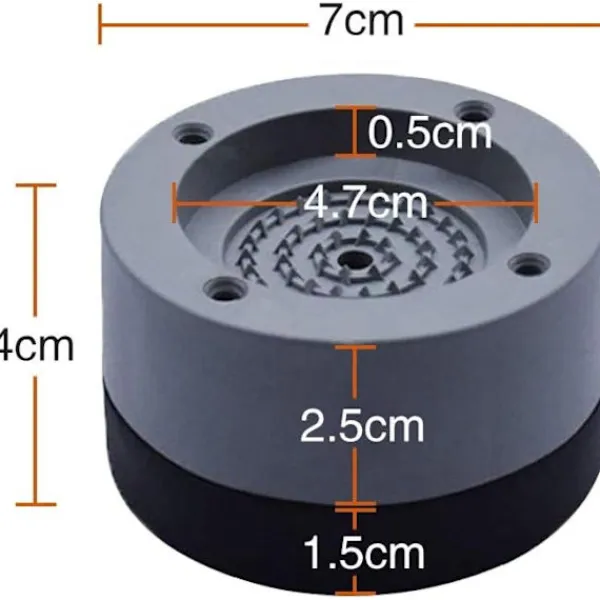 5.Innerdiameter: 4,7 cm, höjd: 1,5 + 2,5 cm Vibrationsdämpare för de flesta märkes tvättmaskiner och stora apparater.