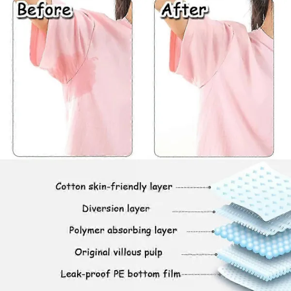 Absorberar svett: Anti-svett inläggen kan absorbera svett under armhålorna, undvika att svett gulnar och blöter ner kläderna, och det kan också effektivt deodorisera, med mintsmak.