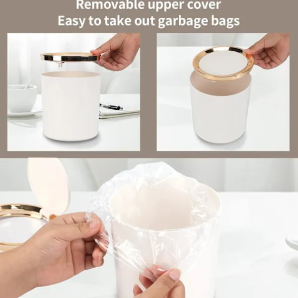Design med lock: Minikorgen av plast för bord med lock kan öppnas med en knapptryckning, är luktfri och ren, och allt du inte vill se är dolt, vilket är bekvämare och mer hygieniskt. Du kan bekvämt hålla kattlådan medan du tittar på TV eller använder datorn. Dessutom kan du enkelt och snabbt slänga papperskorgen när som helst.