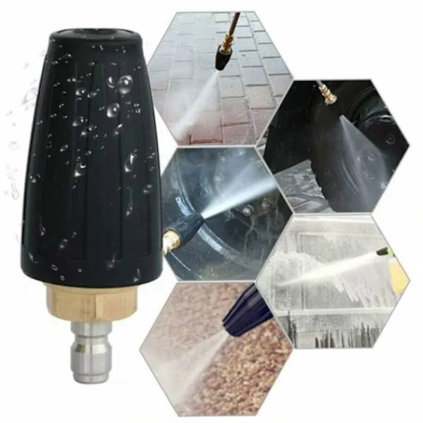 【Material av hög kvalitet】 Den roterande högtryckstvätten med en konstruktion av mässing och rostfritt stål. Detta roterande turbmunstycke har motståndskraft mot oxidation och korrosion, med det smidda mässingshöljet med hög hållfasthet, vilket ger ett tillbehör med lång livslängd.