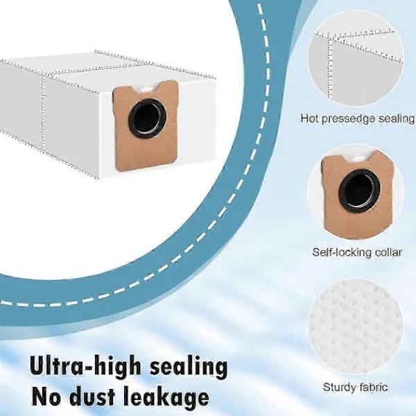 Avancerad Förseglingsteknik: Våra dammpåsar har en 4-lagers materialdesign som använder robust förseglingsteknik för att förhindra att damm, smuts och skräp slipper ut, vilket ger en säker och ren lösning.