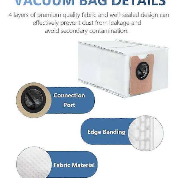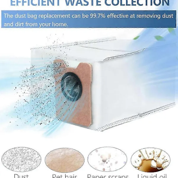 Avancerat Filtreringssystem: Utrustade med ett högeffektivt flerskiktsfiltreringssystem fångar våra dammpåsar 99,9 % av damm, fina partiklar och lukter samtidigt som de bibehåller luftflödet. Även när påsen är full kommer den inte att täppas till, vilket säkerställer konsekvent sugkraft.