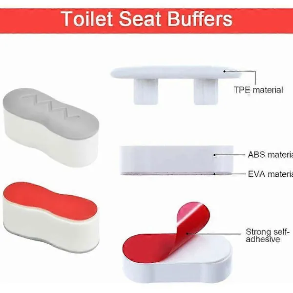 Multifunktionell toalettsitsdyna: Med slagtålighet och slagtålighet kan toalettsitsens stötfångare öka höjden på toalettsitsen. När du öppnar och stänger toalettlocket dagligen minskar det inte bara effektivt buller, utan skyddar också ytan från att gnugga och repa