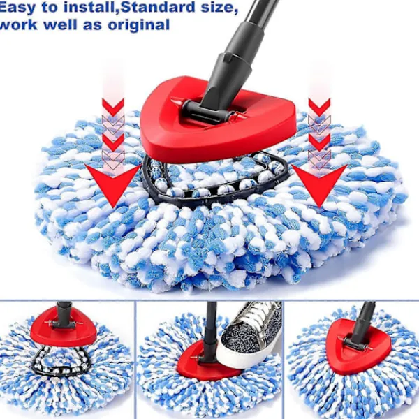 Lätt att installera: Passar det ursprungliga spin mop-huvudet/handtaget och spin mop-hinken. Mycket lätt att byta ut.