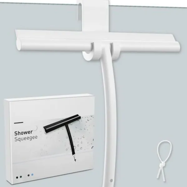 Duschskrapa, med silikonhållare Duschskrapa Rostfritt stål kärna för badrum, glas, duschdörr, fönsterskrapa för bilfönster – Vit