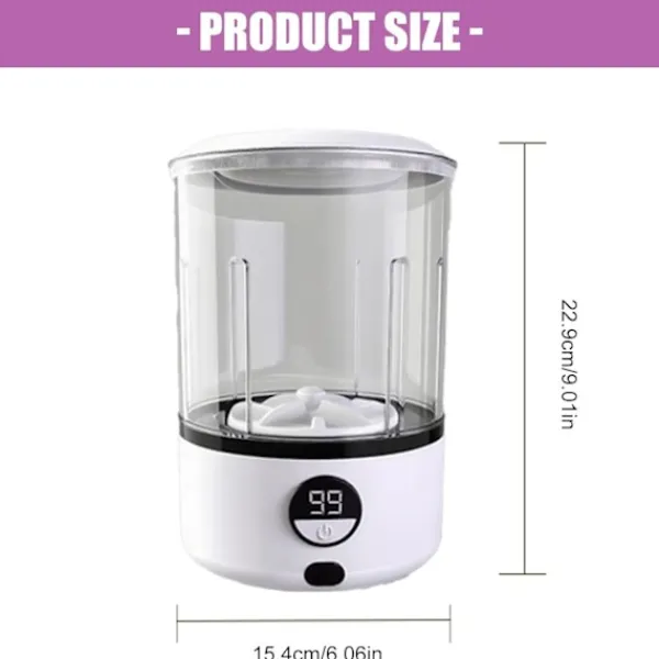 Avtagbar & Lätt att Rengöra: Transparent ABS/PET-kopp och avtagbar inre trumma gör rengöring och underhåll enkelt.